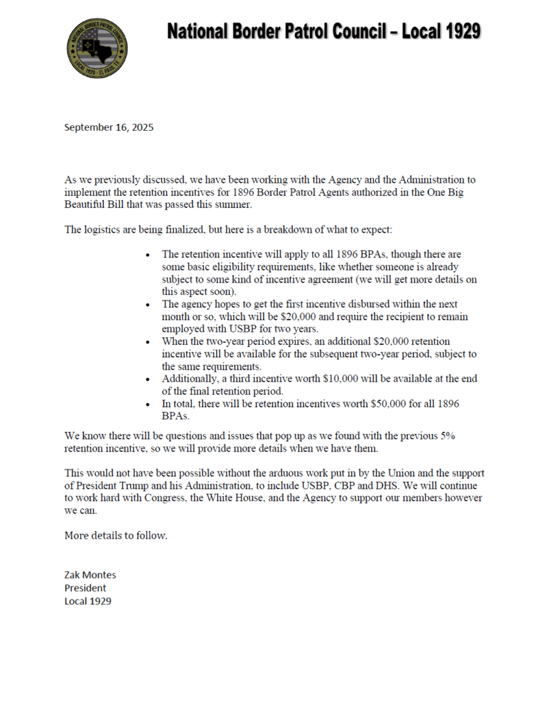 Please see the attached update regarding the retention bonuses.